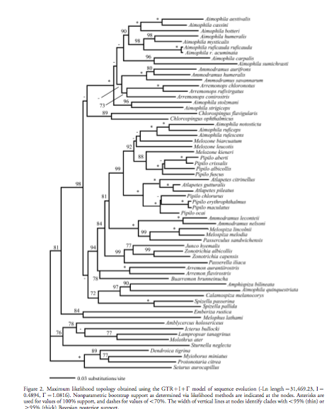 molecular systematic revision of two historically problematic songbird clades: Aimophila and Pipilo. J. Avian