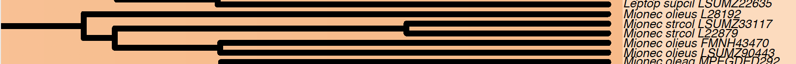 as well as the other species of Mionectes. In their analysis, Mionectes olivaceus was paraphyletic, with nominate olivaceus, sister to a clade with Mionectes striaticollis and samples