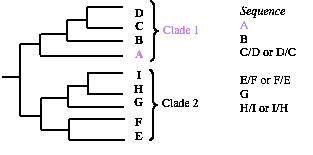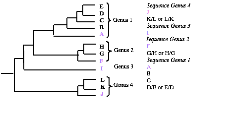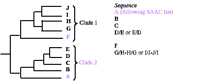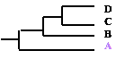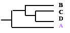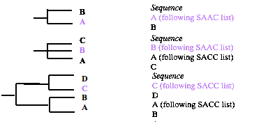 that is, internal nodes*) is placed at the top of the sequence (taxon A). The