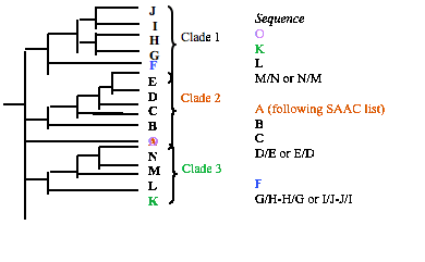 if these clades are equally diverse (clade 1 and 2), the SACC list is followed to