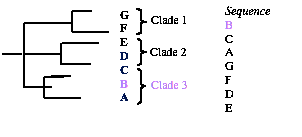 shortest branch is placed first (taxon B, clade 3). Then, the clade with