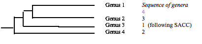sister taxa not being placed next to each other in a sequence).  Our convention is that we follow