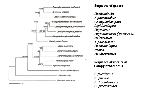Deconychura that were not included) and the sequence of  species of Campylorhamphus.