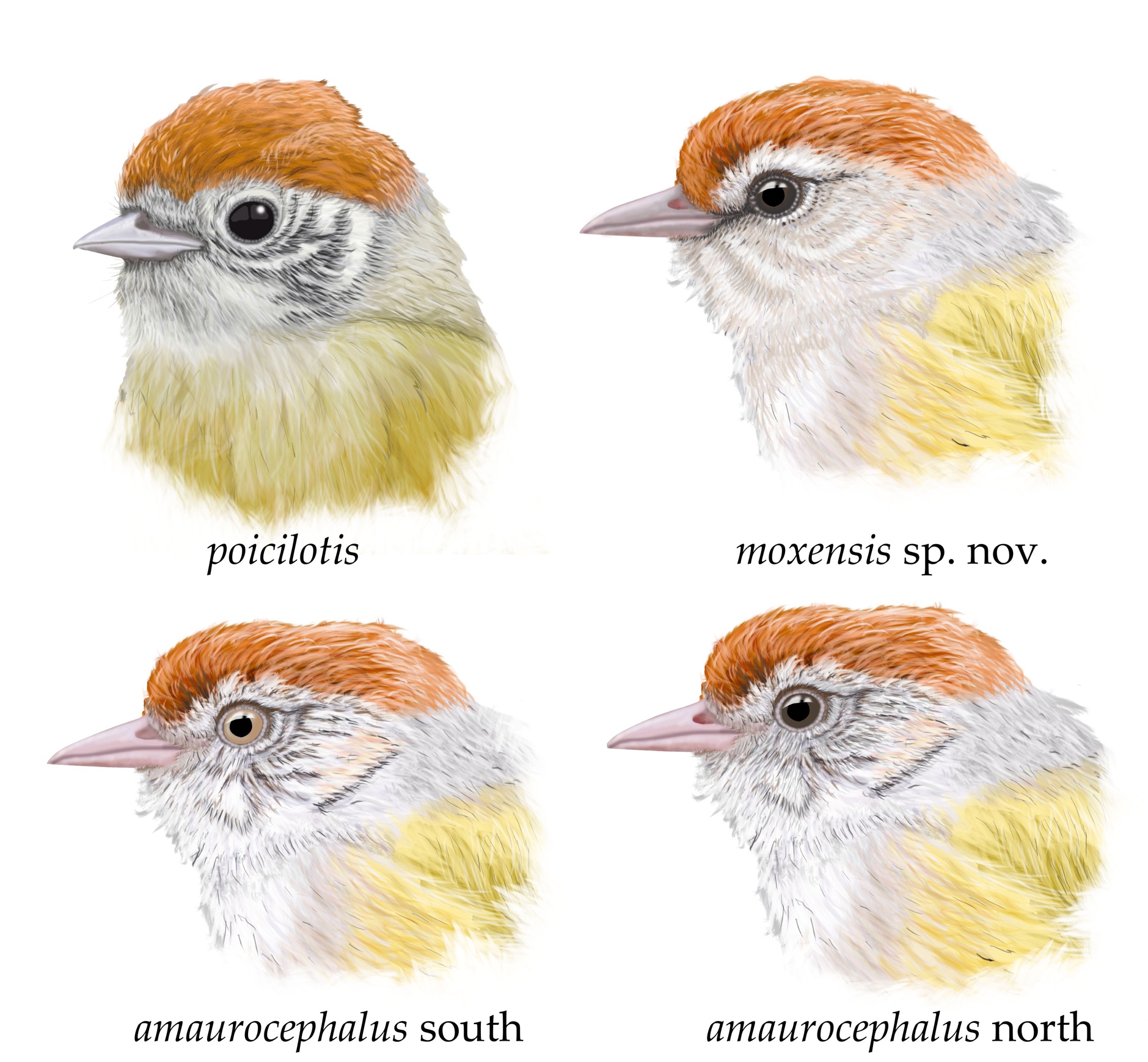 amaurocephalus and H. poicilotis, H. moxensis always has dark